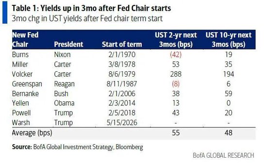 具体风险因素包括劳动力市场意外提速、地缘政治背景下美元走弱,以及新任美联储主席Warsh就任后的初期鸽派预期——历史数据显示,过去7位美联储主席上任后前三个月内,美债收益率平均上升50个基点。